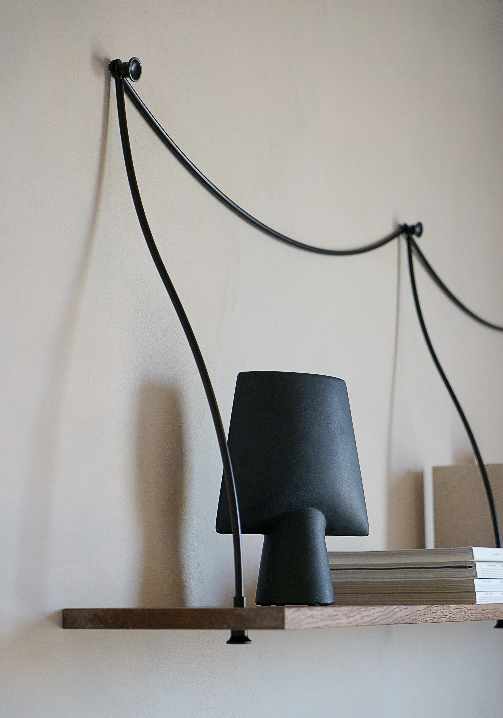 The metal rods give it an industrial edge, while the slender metal cords add a sense of lightness, creating the impression of the shelf floating in space. This harmony of contrasts makes Ferro an ideal choice for those seeking something distinctive and refined for their interior.