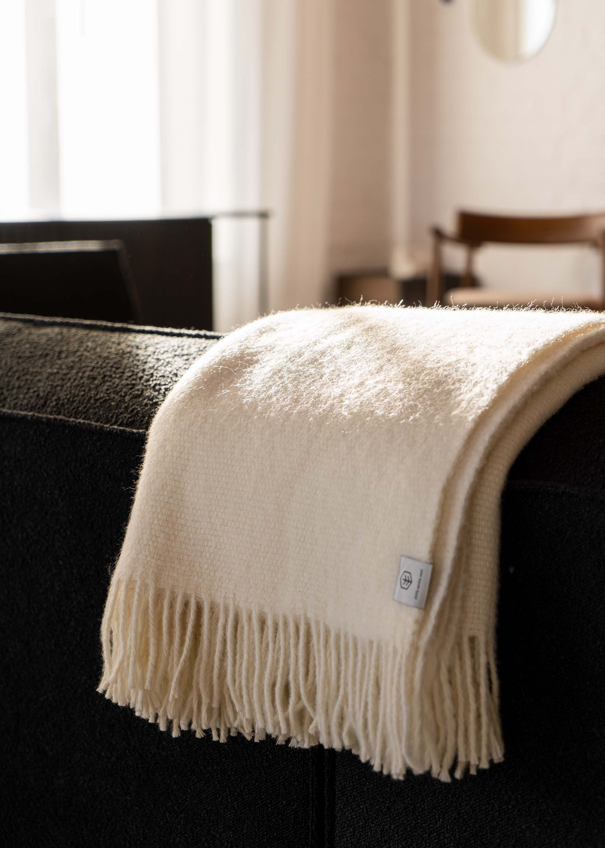 Crafted from 100% New Zealand merino wool, this throw features a classic houndstooth weave and an exceptionally soft texture. It provides warmth and comfort during cooler moments — whether indoors, on a terrace, or by the sea.