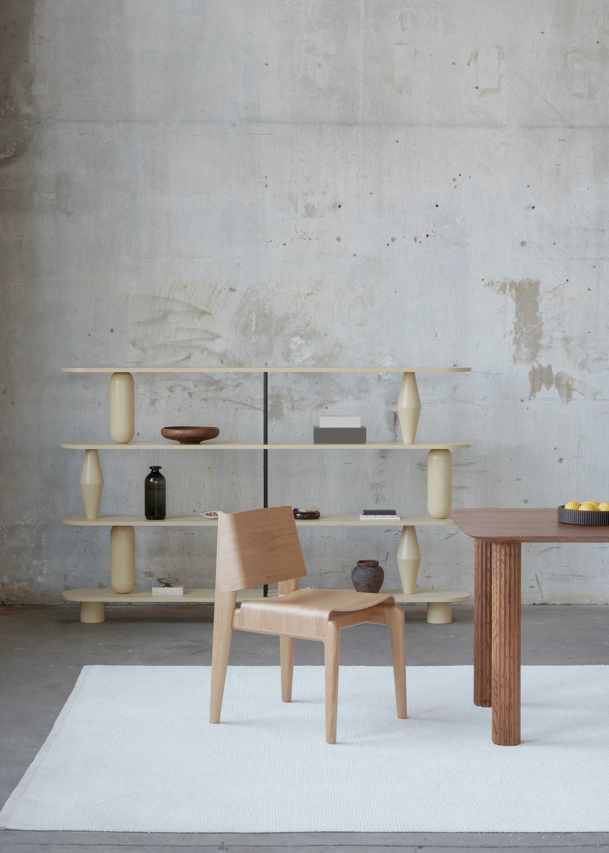 The gentle bends of the plywood give the silhouette a natural softness, while the oak structure provides stability and strength, remaining visually subtle. UNDIA introduces a calm, harmonious line into the space ā present, yet unobtrusive.